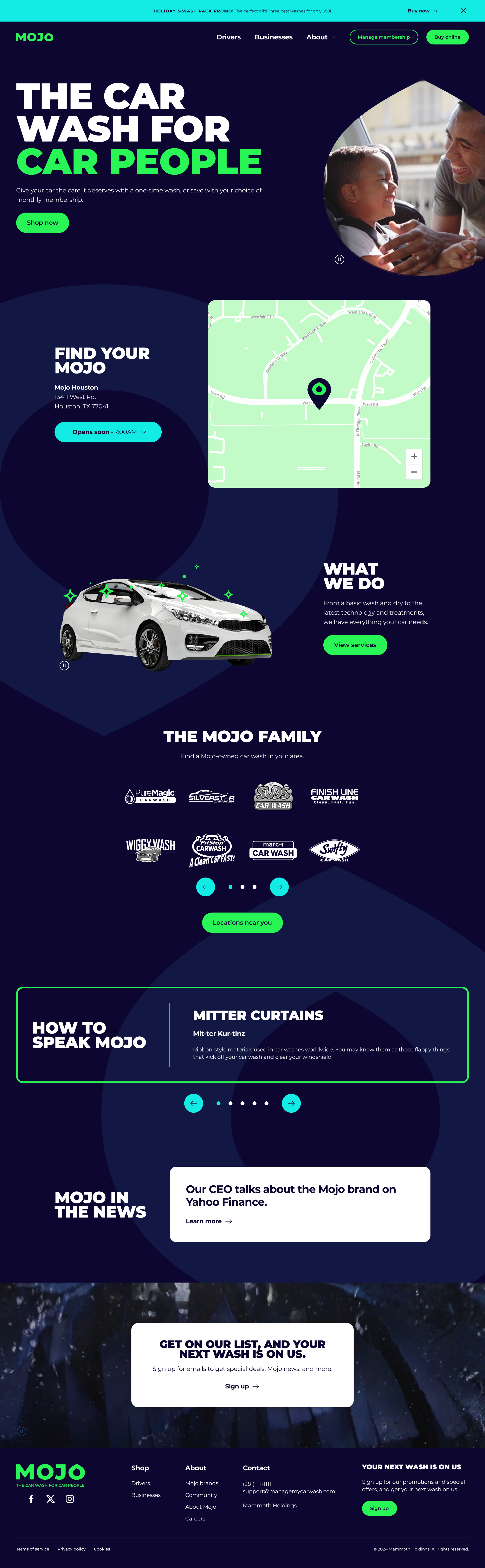 Mammoth Holdings, the parent company of 132+ car washes across 20+ regional brands, lacked a unified brand identity. Each location had its own look and feel, creating inconsistency and limiting brand recognition at a national level. Alongside this, Mammoth needed a bold digital presence and scalable design systems to support their rapid growth and strengthen customer engagement across channels.